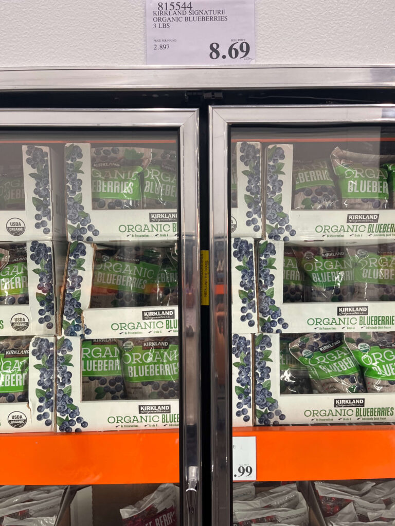 Organic frozen blueberries were $8.69 for 3 lbs. Fresh blueberries are great, but the organic frozen ones are so much cheaper. These are a great addition to a smoothie or to muffin batter.