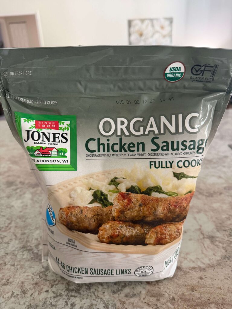 A great quick breakfast protein, Organic Chicken Sausage was $13.99 for 2 lbs.